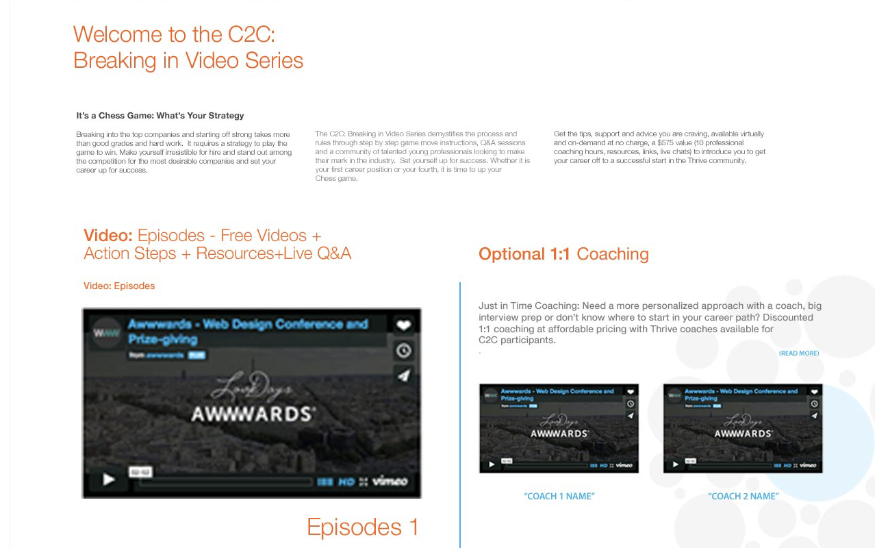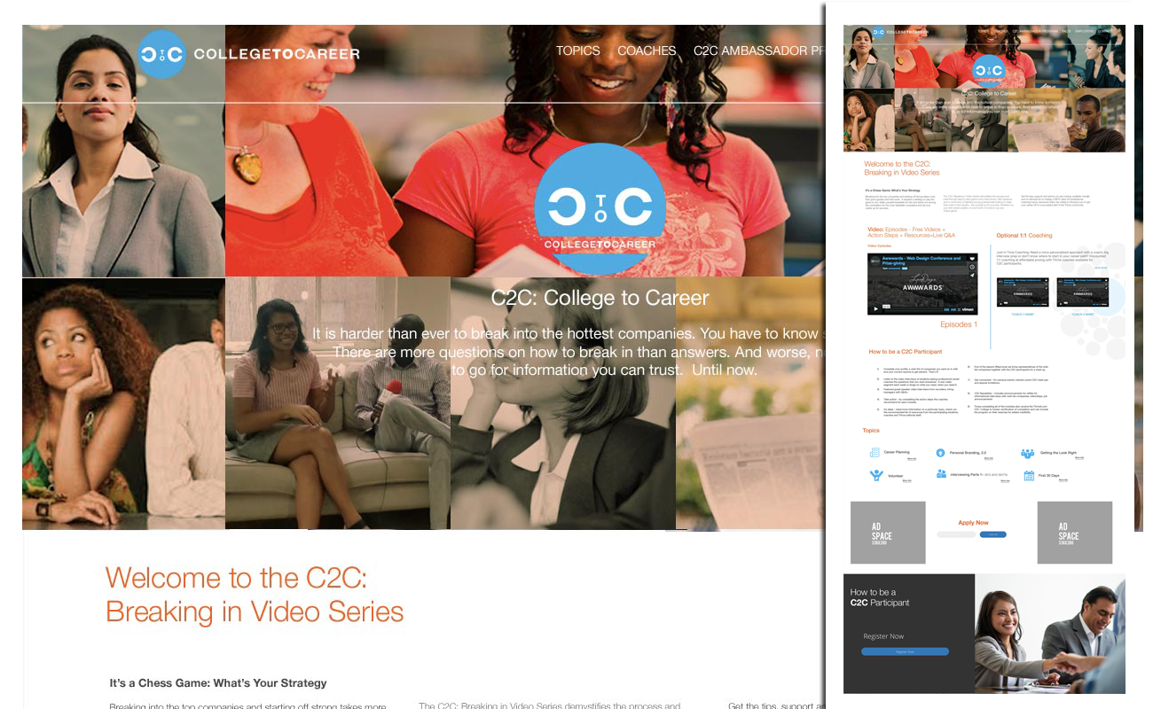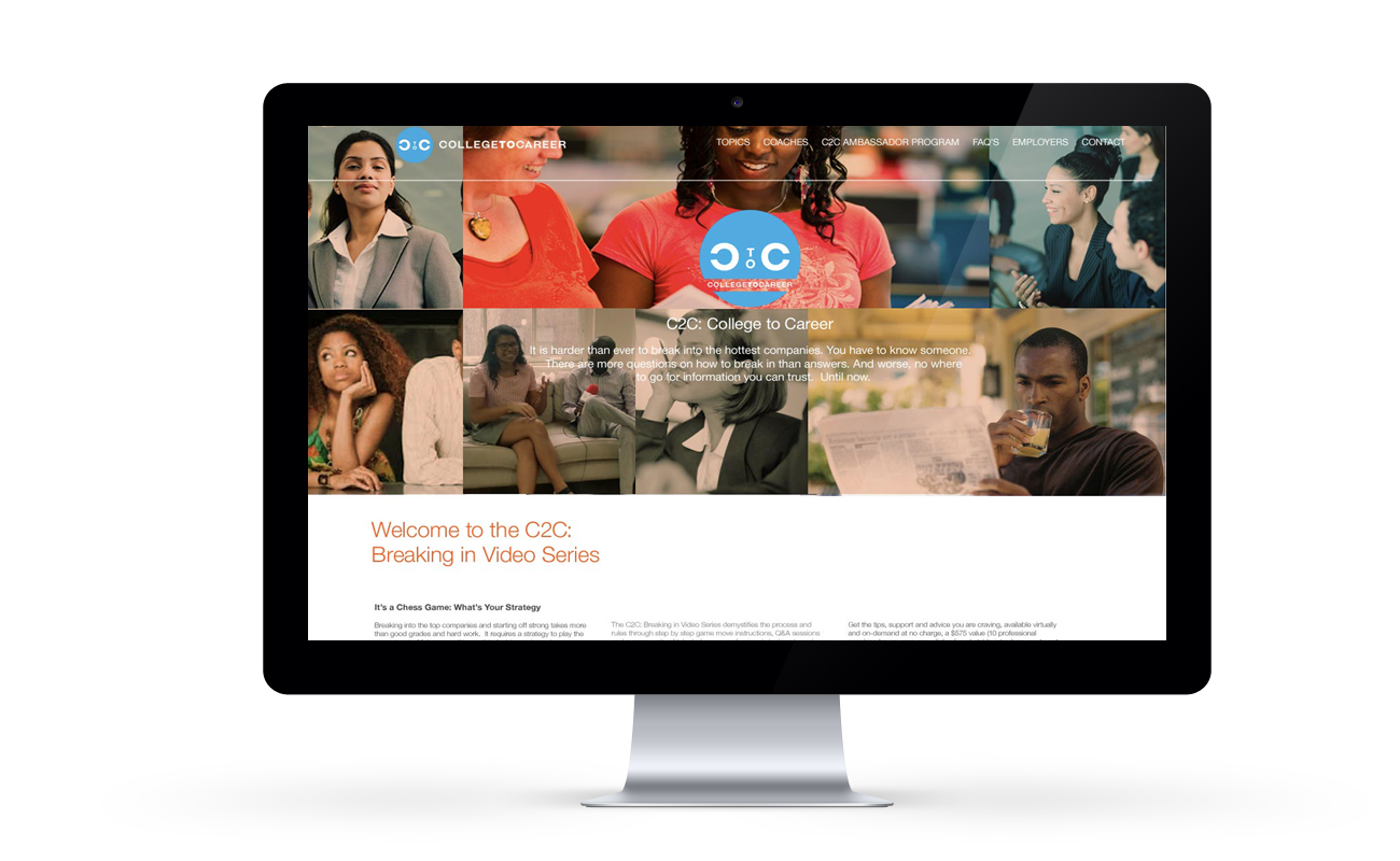 C2C COLLEGE 2 CAREER is a company that provide webseminar video, resume tips and interview skills for recent college grads. Client wanted clean and informative site about company services.